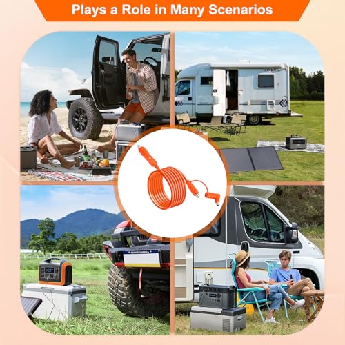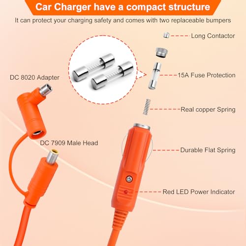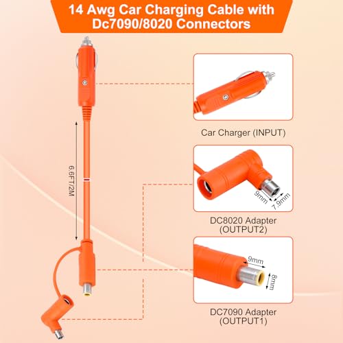 14AWG 12V/24V Car Charger Cable for Jackery Portable Power Station, 2M/6.6FT Fast Charging Cord 15A with DC7909 & DC8020 Plug Adapter for Power Stations, Trucks, RVs, Fridges
