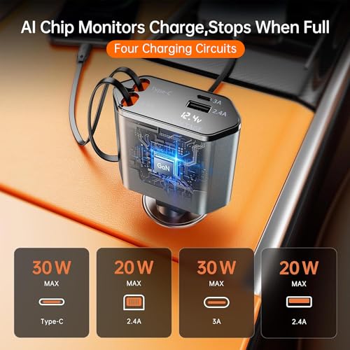 The GUSGU Retractable Car Charger combines smart power cut-off, dual-chip precision control, and automatic device adaptation, ensuring safe and fast charging with real-time current monitoring. Its retractable design offers convenient storage, providing comprehensive safety and efficiency for both your car and devices.