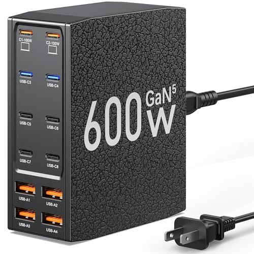 【12-in-1 USB C Charging Station】This 600W USB C Charger Block comes with 8 USB C ports and 4 USB A ports to charge multiple devices, simplify your charging setup, and let you experience the convenience of ultra-fast and ultra-high output charging. With its smart charging technology, it can automatically detect and provide the best power output for each connected device, ensuring fast and efficient charging.