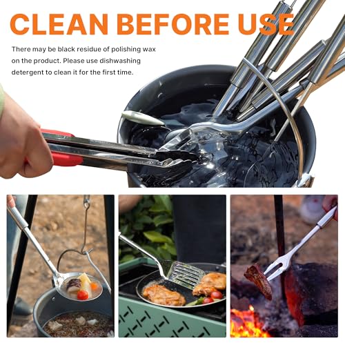 Camping Cooking Utensils Set Grilling Cookware Camp Kitchen Rotating Marshmallow Roasting Sticks BBQ Forks, Portable RV Camping Essentials Camper Must Haves for Cookouts Open Fire Pit