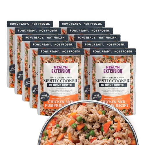 Health Extension Gently Cooked Chicken & Pumpkin Dog Food, Human-Grade & Shelf-Stable with Superfoods, Supports Digestion, Immunity, Skin & Coat, 9 oz Pouch (Pack of 10)