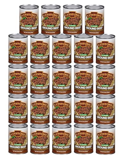 Keystone Meats All Natural Heat and Serve Ground Beef 14 oz – Fully Cooked Canned Meat – Ready to Eat – 5-Year Shelf Life – Pantry Staple for Everyday Meals, Emergency Survival Canned Food – Made in USA – Pack of 24