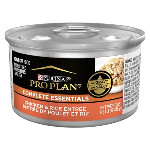 Purina Pro Plan High Protein Cat Food Complete Essentials Wet Gravy, Chicken and Rice Entree – (Pack of 24) 3 oz. Pull-Top Cans