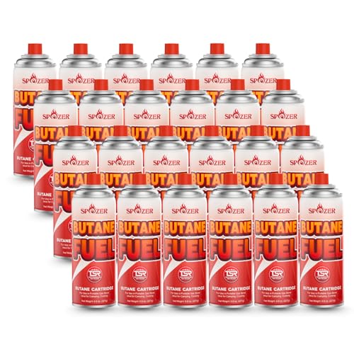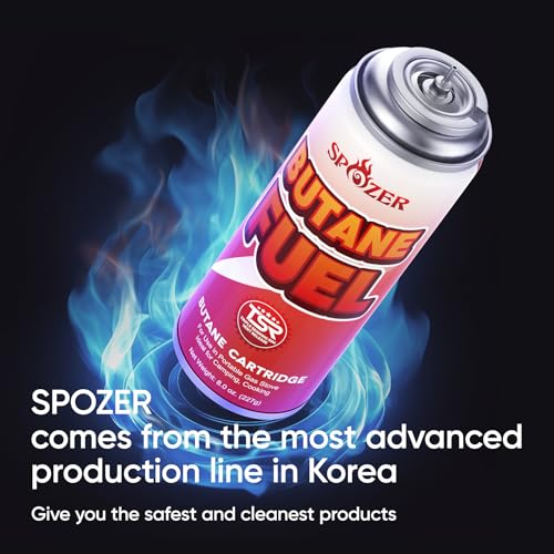 PREMIUM REFINED BUTANE FUEL – SPOZER butane canisters are filled with clean, high-quality 227g (8oz) refined butane. Burns efficiently with minimal residue—producing only CO₂ and water vapor when fully combusted. Ideal for indoor or outdoor cooking.