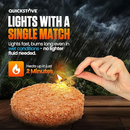 LONG-BURNING, HIGH-TEMPERATURE FUEL DISKS – Each fire starter burns at temperatures over 1,000°F for 30–45 minutes, making them ideal for boiling water, cooking meals, or generating heat in cold weather. A dependable fire starter for camping, fire pits, wood stoves, and emergency survival kits.