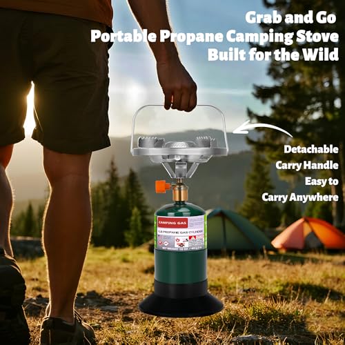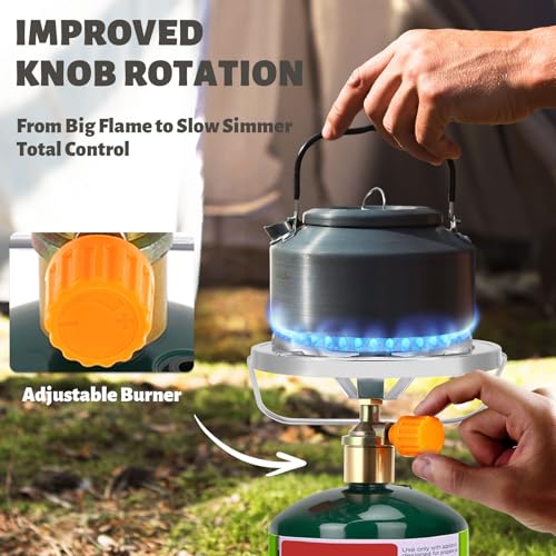 Portable Stove with Detachable Carry Handle – Enhanced Portability: Enjoy ultimate convenience with the removable metal carry handle, which makes this portable portable gas stove incredibly easy to transport, store, and carry without hassle. Take the camp stove propane anywhere, whether you’re heading into the wilderness, a backyard BBQ, a tailgating event, or emergency use, the compact propane burner is compact enough to fit in your camping gear or hiking gear