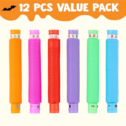 JOYIN 12PCS Halloween Glow Sticks Bulk Party Pack, Halloween Light Up Pop Tube Toys, 6 Colors Glowsticks for Kids Trick or Treat, Holiday Glow in the Dark Party Supplies Favors, Camp Games Activities