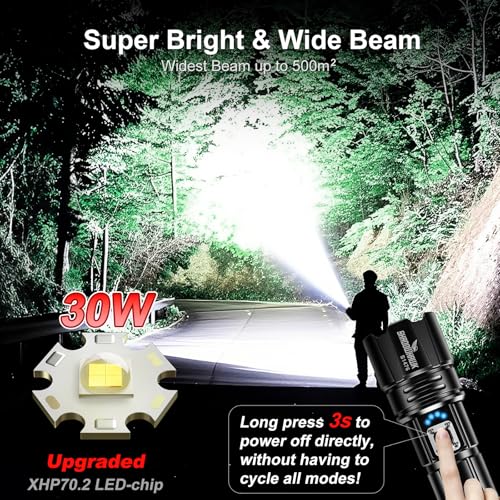 Flashlight 2000 High Lumens Rechargeable – 30W Super Bright LED Flash Light | 5000ft Beam & 12H Long Lasting USB C High Powered Handheld Police Flashlight for Home, Camping, Hiking, Emergency
