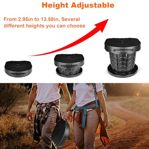【Height Adjustable】Boreeman portable camping toilet can be adjusted to the desired height ranging from 2.95 to 13.58 inches. Meet the demands of most people.