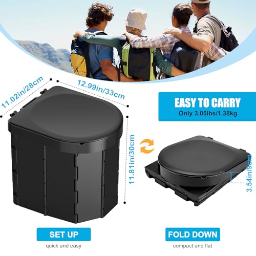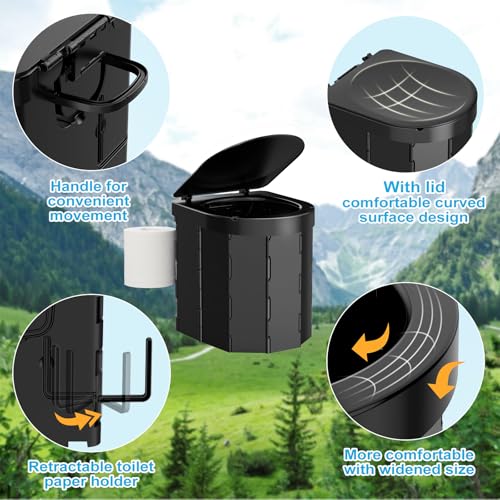 Portable Camping Toilet, Folding Toilet for Adults with Lid and Retractable TP Holder, Waterproof Porta Potty with Carry Bag and Disposible Liners for Camping, Hiking, RV Travel