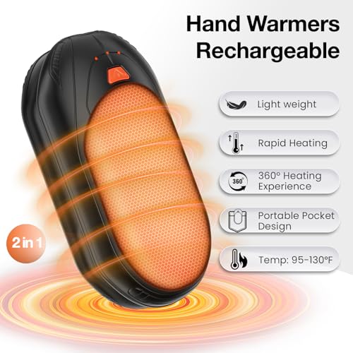2-in-1 Rechargeable Hand Warmer: Experience ultimate versatility with our 2-in-1 electric hand warmers — two units that connect together to form a compact, palm-sized heater, delivering 360° all-around warmth. Use separately to warm both hands or share with a loved one. Perfectly portable and designed for on-the-go use — ideal for travel, hiking, camping, skiing, golfing, hunting, and more.