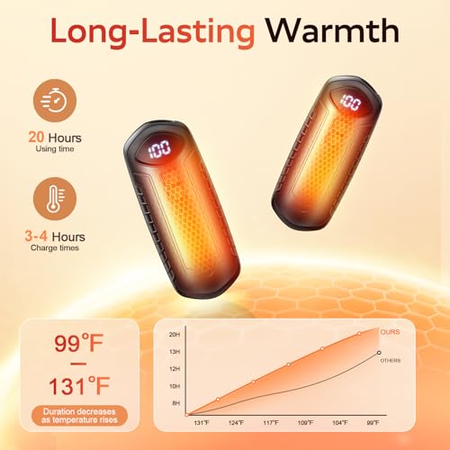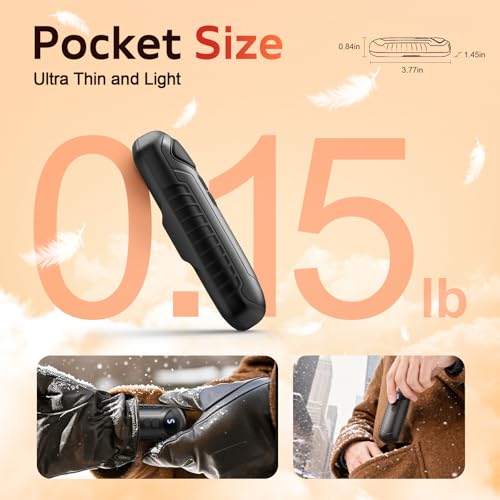 Ultimate Portability – Each hand warmer weighs only 66.4g (about 30% lighter than traditional hand warmers), palm-sized dimensions (3.78×1.33×0.88in), slim body design, easy to fit into pockets, gloves, hat edges, and other small spaces without adding carrying burden. Suitable for various scenarios such as commuting, skiing, golfing, walking dogs, and office use, it can provide warmth anytime whether indoors or outdoors