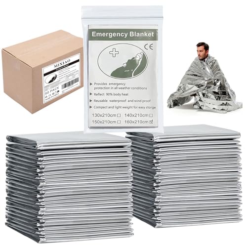 Emergency Foil Thermal Blanket (Pack of 50), 210 x 160 cm (82″ x 63″) Emergency shelter Survival Reflective Blankets Perfect for Outdoors, Hiking, Survival, Marathons or First Aid
