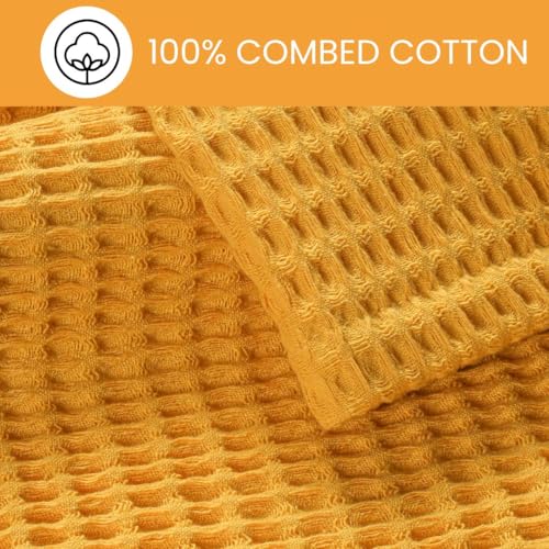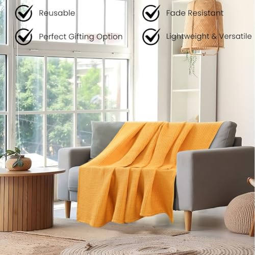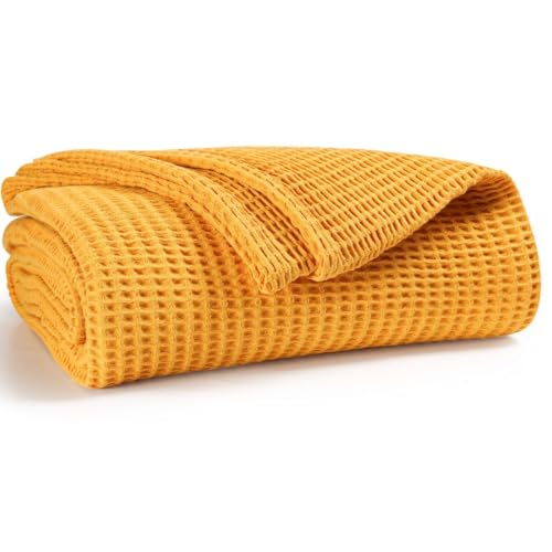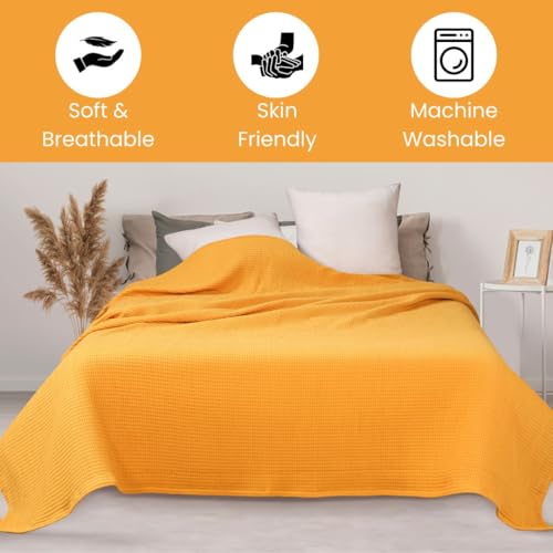 Prewashed Waffle Blanket 100% Combed Cotton – Soft, Lightweight, and Breathable – All-Season Cozy Blanket for Bed, Couch, or Sofa – 90×102 Inch King Size Thermal Throw Blanket Yellow