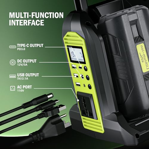 Inverter Powers Small Appliances: This inverter for Ryobi is equipped with 3 USB-A ports, 1 USB-C port, and 1 DC port, ideal for small appliances such as phones, fans LED light radio and laptops etc.