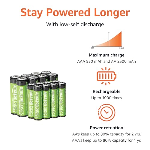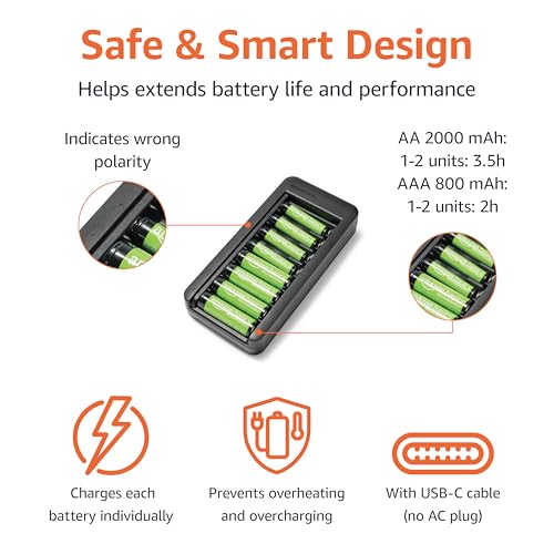 Be the first to review “Amazon Basics Rechargeable NiMh Battery with Bay Charger, 8 AAA 800mAh + 8 AA 2000mAh, No AC Power Adapter, USB C Port, Pack of 16, Black”