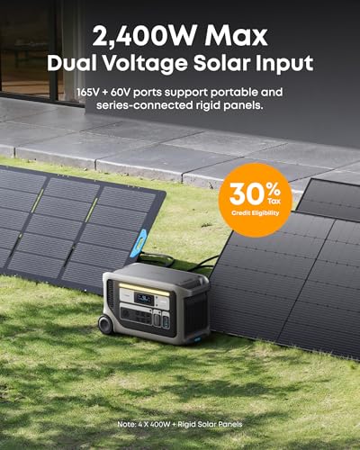 Ultra 2,400W Solar Recharging: With portable and rigid solar panel compatibility, charge fast outdoors. Just plug into the 165V or 60V ports.