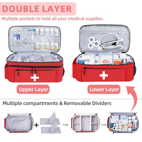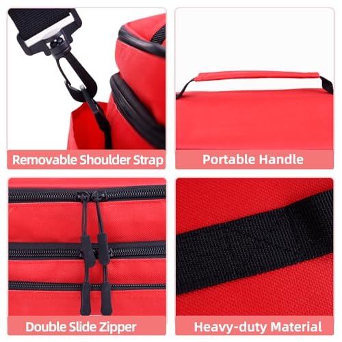 First Aid Bag Empty Large Medical Bag with Shoulder Strap 16”x 9½” x 7” Medicine Organizer Box Travel First Aid kit Emergency Supplies Storage Bag for Car, Home, Office, Outdoor (Red)