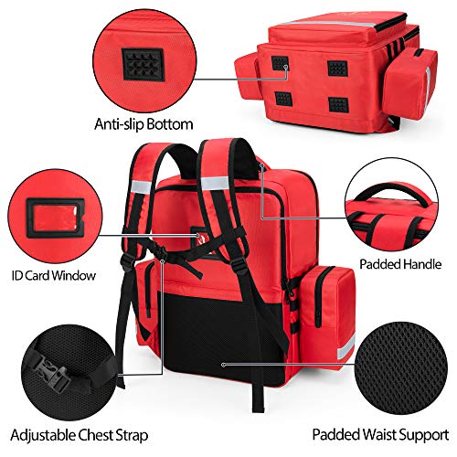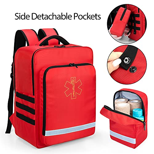 Trunab Emergency Medical Backpack Empty, EMT Camping Molle Bag with Detachable Side Pocket and No-Slip Bottom for Camping, Hiking, Traveling, Daycare, Red, Bag Only