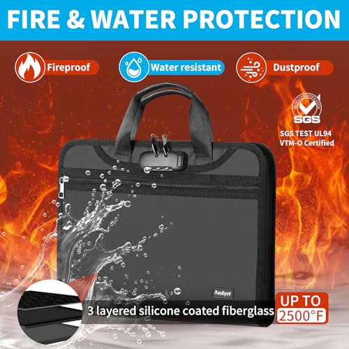 Fireproof & Waterproof & Dustproof: Fully protect your files and keep them organized with Andyer fireproof accordion file organizer. It features 3 layers of silicone-coated fiberglass which withstand the temperature up to 2500℉ – Has passed global flammability standards and vertical burning tests(SGS UL94 V-1). With a waterproof and dustproof silicone outer, to stop sprinklers, rain, water and dust damage