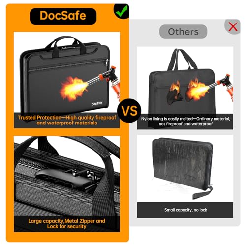 DocSafe Accordion File Organizer with Combination Lock,Fireproof Water Resistant Expanding File Folder with Multi Pockets,Document Organizer Home Office Travel Safe Storage for Letter Size Files,Black