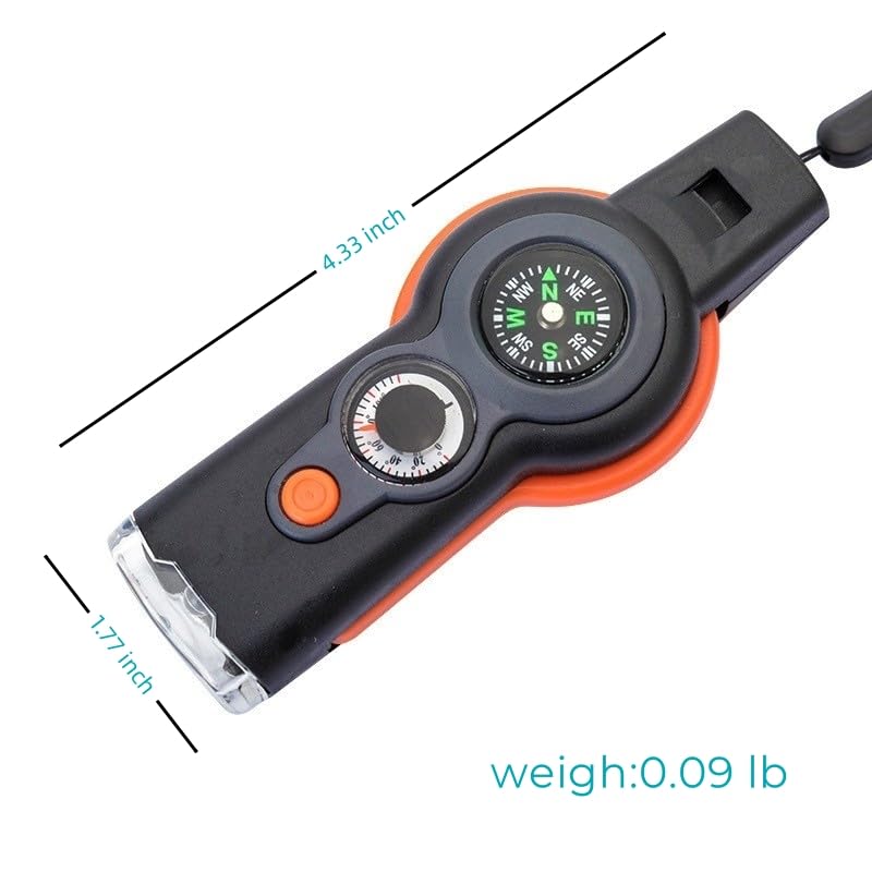 7 in 1 Emergency Survival Whistle with Compass, Outdoor Multi-Functional Hiking Safety Tool with Lanyard
