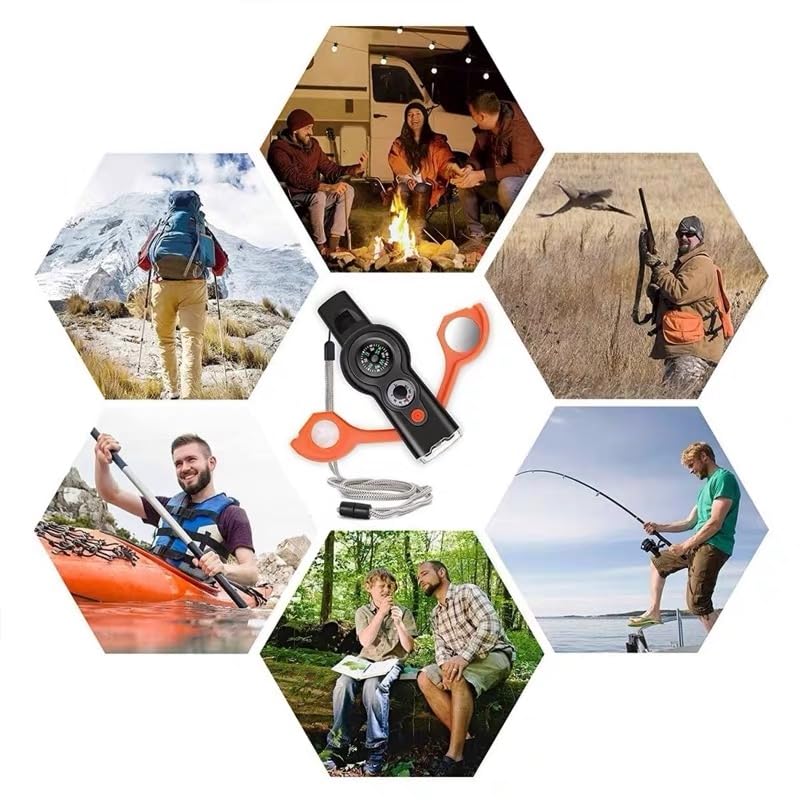 【Outdoor Gift】 This 7-in-1 outdoor multifunctional safety whistle is perfect for any enthusiast who enjoys adventure, hiking, driving, mountaineering, or camping activities. It is a great birthday or holiday gift for men, husbands, fathers, scouts, and others.