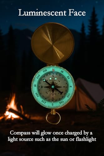 Glow in The Dark Brass Pocket Compass for Kids – Waterproof Navigation Tool for Camping, Hiking, Backpacking, Orienteering, Hunting, Survival Gear, Outdoor Safety & Adventure Gift