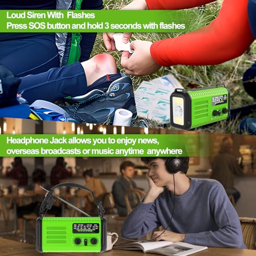 [AM/FM NOAA Emergency Weather Radio With 7 Presets] All-in-one Emergency Weather Radio with LED flashlight, emergency radio hand crank solar empowering your life when natural disaster emergency. This NOAA emergency weather radio, portable am fm radio can get the real-time emergency weather information such as hurricanes, tornadoes, wildfires, earthquakes, etc via 7 preset channels and high-sensitivity antenna when you tune into local weather bands. Comes with a 3.5 mm headphone jack to listing overseas news, NOAA broadcasts and music in your leisure time. Emergency weather radio with NOAA/AM/FM-A life-saving disaster preparedness tool for early evacuation