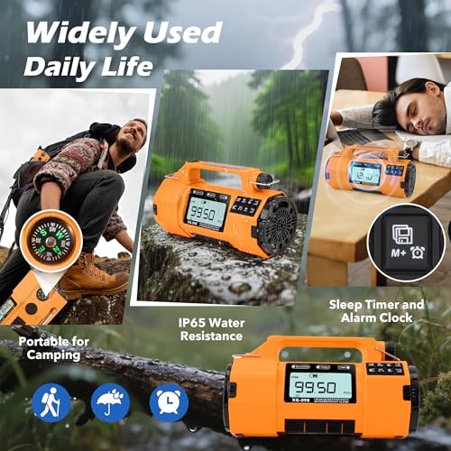 Emergency Weather Alert Radio FM/AM/SW/NOAA, Solar Hand Crank Radio with Replaceable Battery, USB-C Charging, Cell Phone Charger, SOS Alarm, Headphone Jack, Sleep Timer Clock for Survival