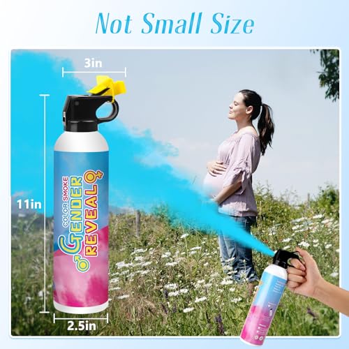 Boy or Girl? Shake our gender reveal fire extinguisher up before removing the safety pin, then have a pressing, it will spray(There is a blue dot on the bottom of the jars, keep gender secret with the included black sticker until revealing)