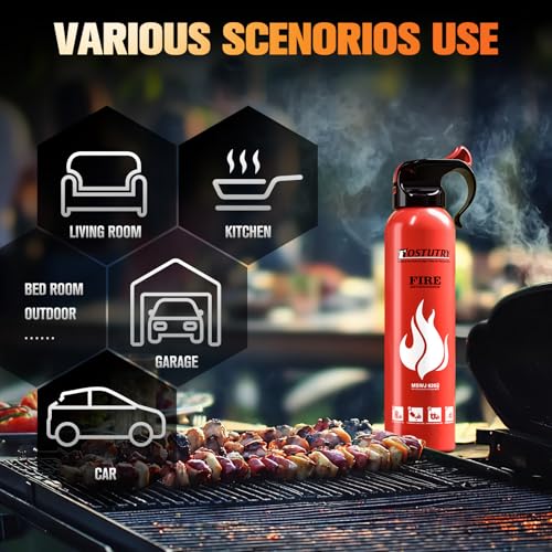 Multipurpose Usage: Ostutry fire extinguisher is suitable for A B C K fires, including solid materials, flammable liquids, electrical equipment, cooking oils, even circuit fire under 36,000 volts(power off first), lithium-Ion battery-common in phones laptops