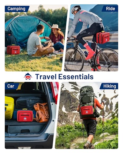 Efficient Labelled Compartmentalized Design: Every compartment of emergency first aid kit clearly labeled and intelligently sorted ( Trauma, Wound Care, Medications, etc) and the organized internal compartments allow you or your whole family members to not fumbling during emergencies—save critical time. First aid kit camping make your travel or daily life safe and worry-free.