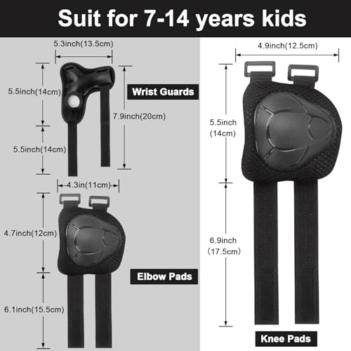 Kids/Youth Knee Pads and Elbow Pads Set with Wrist Guard 3 in 1 Kids Protective Gear Set for 3-14 Years for Skateboarding, Skiing, Cycling, BMX Biking, Running, Scooter