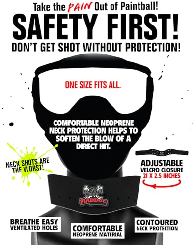 NECK SHOTS ARE THE WORST! Don’t wait until it’s too late to pick up a neck protector. Getting shot in the neck can take you off the field for a game or two while you recover. Maddog’s Neoprene Neck Protector is comfortable and helps soften the blow of a direct hit. Padded neck protector offers reliable comfort and coverage. Adjustable fit – 21 x 2.5 inches.