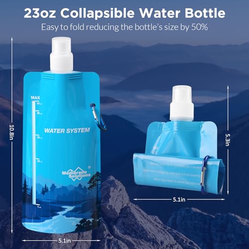 Membrane Solutions Collapsible 23oz Water Bottle with Filter Straw, Reusable Pouch and Carabiner, Foldable Water Container for Hiking, Camping, Travel, Emergency