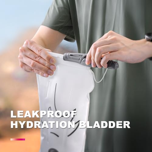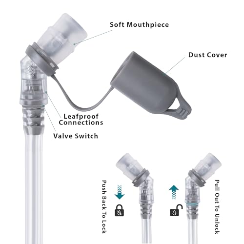 【High-Flow Locking Valve and Well-Sealing】The hiking bladder is equipped with our flexible, non-kinking drink tube and the high-flow. The soft and durable bite valve can provide a continuous and stable water supply, and there is also a detachable quick-release tube. The water bladder has a dust cover to keep dirt out. Meanwhile,the double-sealing technology of the water bladder enhances durability