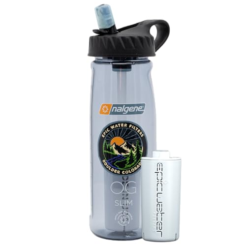Epic Water Filters Nalgene OG Water Bottle with Filter, USA Made, BPA Free, Removes 99.99% Tap Water Contaminants, Forever Chemicals, Smoke Grey, 32 oz